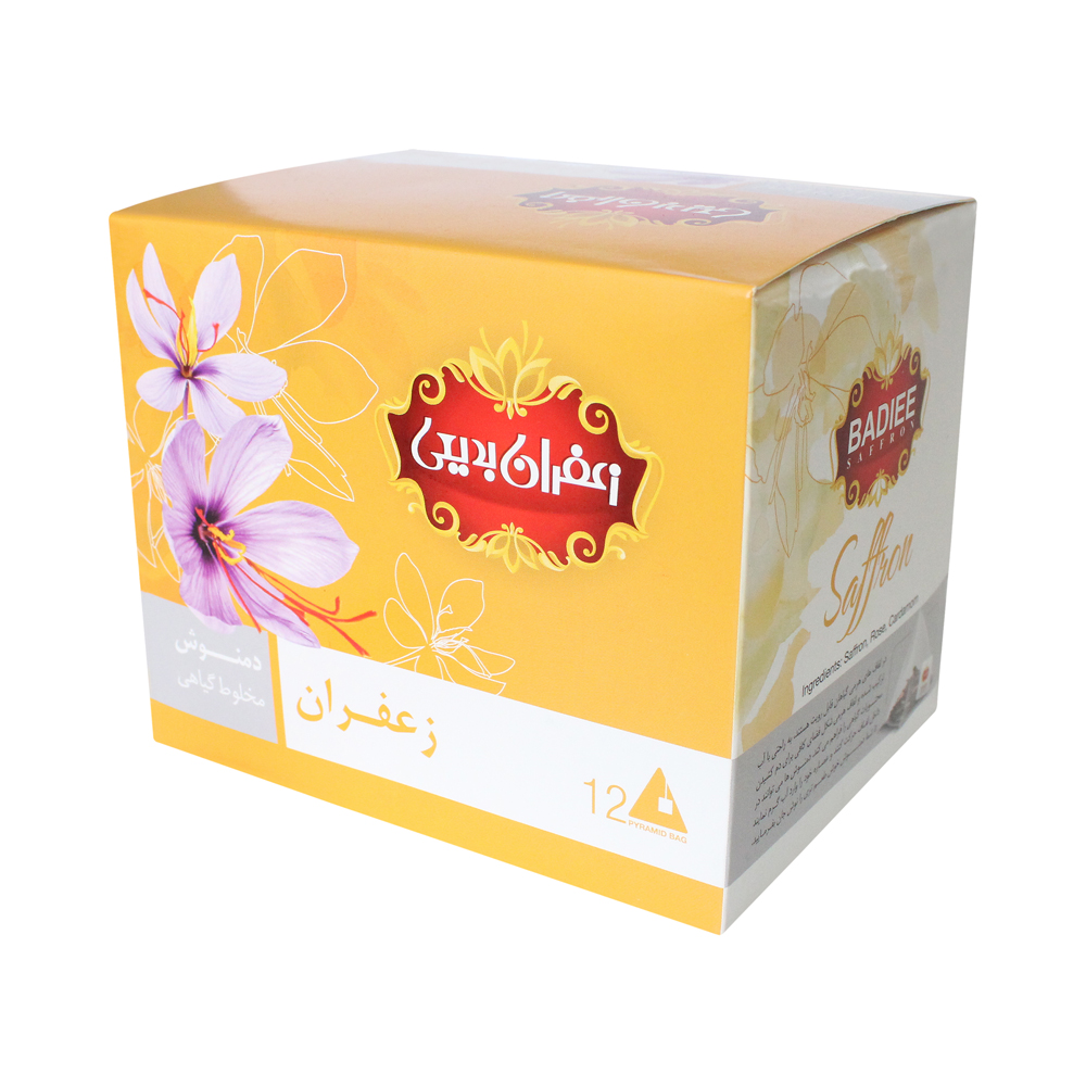 دمنوش زعفرانی بدیعی تهیه شده از مواد اولیه مرغوب است و در کیسههای لفافدار با استانداردهای روز دنیا بستهبندی میشود.